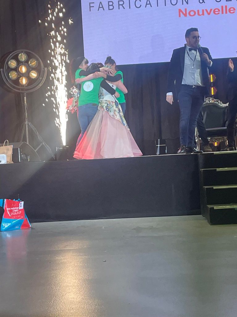 16h : tout le monde est rappelé au pied de la scène, les équipes s’y présentent une à une. Le prix du public est remis à l’équipe Les Talents Corréziens. Vient ensuite, la remise du prix du jury … La quinzième place, la quatorzième, la treizième … et ainsi de suite. Chaque équipe a tout donné, il y a des modèles magnifiques. On se regarde avec les filles, on dit des bêtises mais la tension est palpable car le podium approche et on commence à y croire. Et voilà qu’il ne reste que deux équipes : nous sommes conviées à monter sur scène …. Le résultat tombe et nous éclatons de joie, de rire, car nous remportons la première place ! Les larmes montent aux yeux de chacune, nous nous embrassons et on ne réalise pas trop en fait !